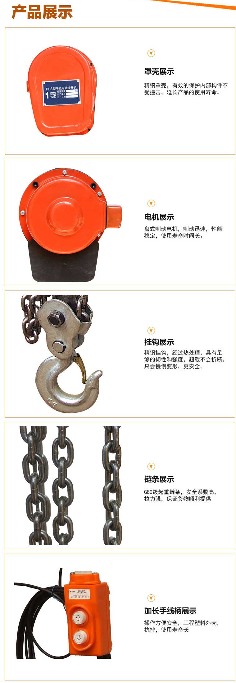 DHS型环链电动提升机由受理5G影院5G天天爽机体、盘式电机及减速器组成,适用于高楼外架提升、设备安装、路桥工程等提升速度较慢或间歇性工作的场合。适用于低速小行程的物料装卸、设备安装、矿山及 工程建筑等方面,价廉物美、安全可靠,为您的工作带来便利。