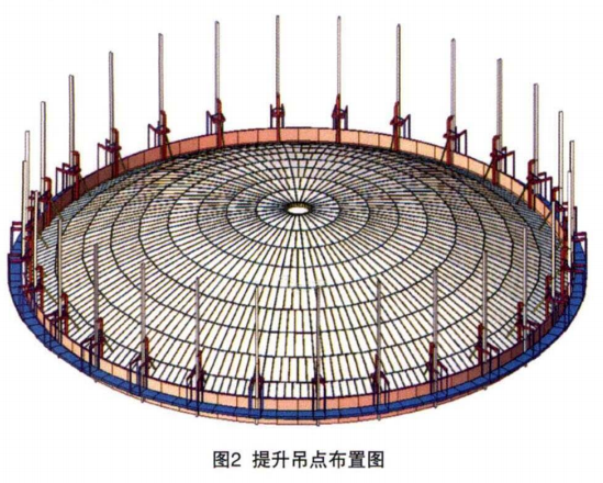 柜顶提升就位。提升到达设计位置,将柜顶与立柱连接板焊接,使提升单元结构与煤气柜体形成整体稳定的受力体系;拆除提升电动5G影院5G天天爽,直至28个电动5G影院5G天天爽完全松弛不再受理,从而完成柜体整体提升工作。